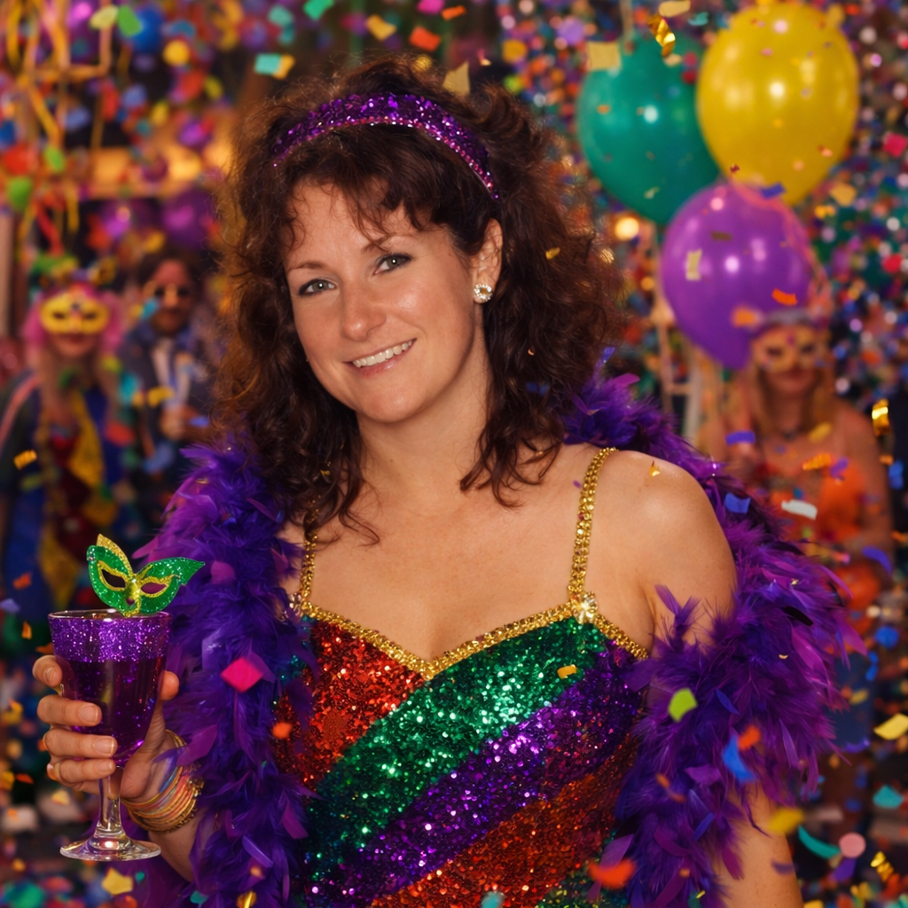 Jeszcze karnawał, więc kolejny wiersz też w tym duchu, ale tym razem wolny, czyli taki jakie lubię tworzyć najbardziej, chociaż może nie… najbardziej lubię białe. A do tego wiersza AI przerobiła moją fotkę sprzed wielu lat na taką karnawałową.