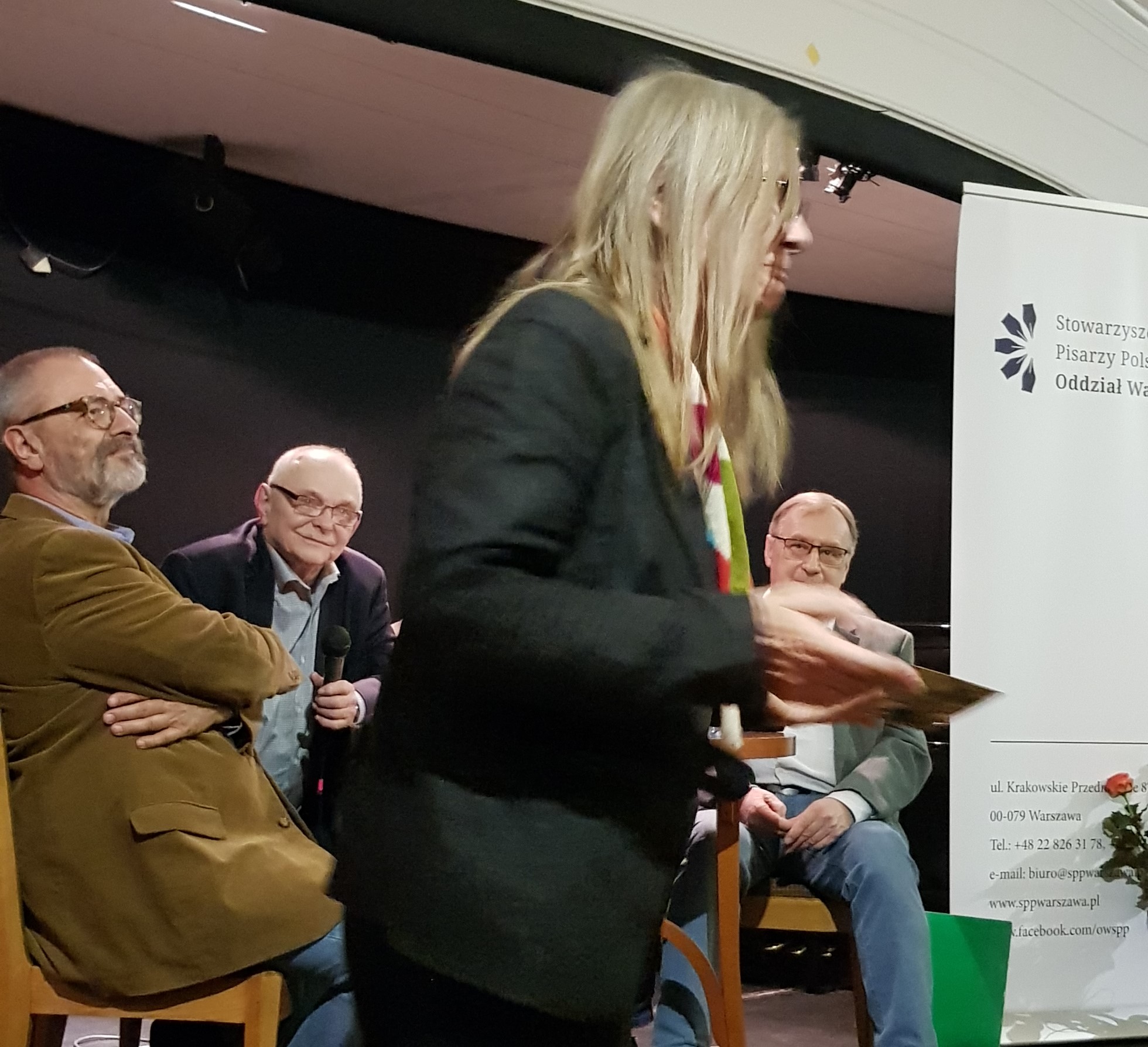 Spotkanie prowadził pisarz Wacław Holewiński, a z nim krytyk literacki Wojciech Kaliszewski i poeta Waldemar Żyszkiewicz.