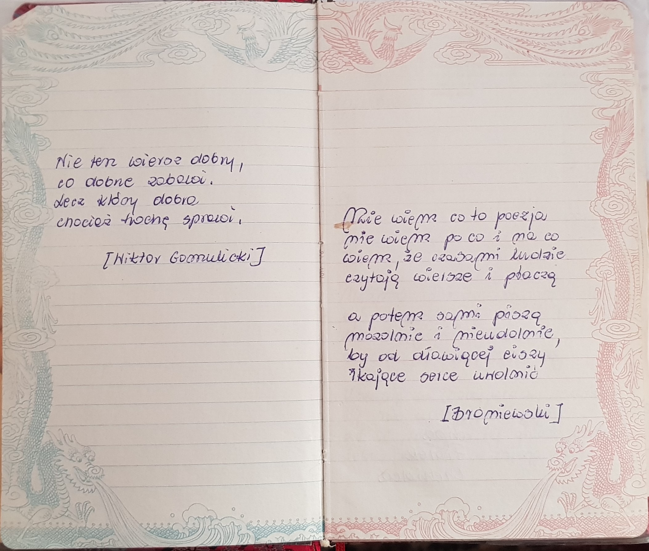Na początku właśnie żart był motorem do pisania, a potem były inne inspiracje. Zaczęłam zbierać swoje wiersze w ozdobnym kajeciku, a jego miejscem przeznaczenia była szuflada.
