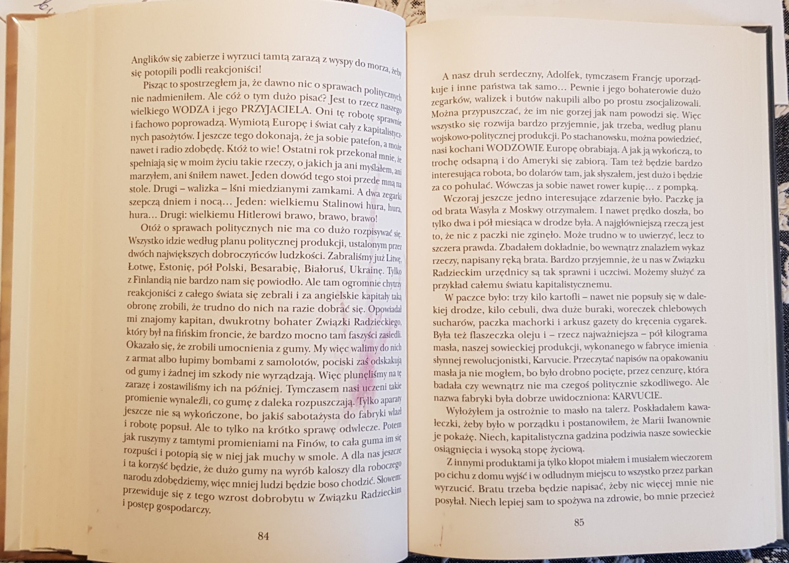 Jestem na świeżo po dobrej lekturze. „Zapiski oficera Armii Czerwonej” Sergiusza Piaseckiego. To opowieść, ale jak dokument, bo autor pokazuje to, o czym chyba juz dzisiaj wszyscy wiemy i o czym mówi historia. Znam to też z przekazów rodziny, która była świadkiem zdarzeń opisywanych w książce.